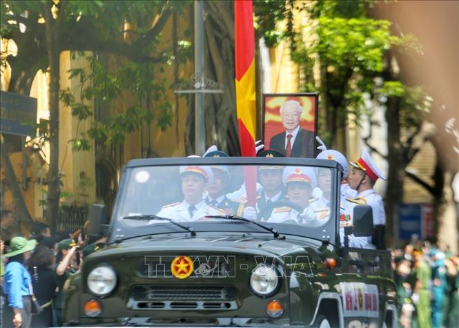 Linh xa đưa linh cữu Tổng Bí thư Nguyễn Phú Trọng hướng về Nghĩa trang Mai Dịch