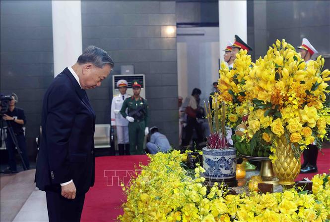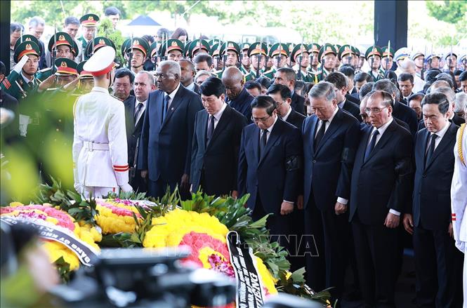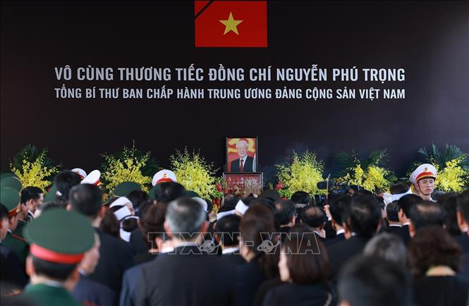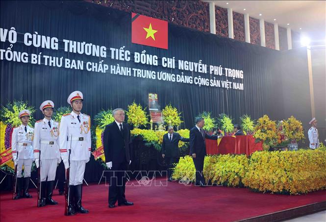 Vô cùng thương tiếc Tổng Bí thư Nguyễn Phú Trọng, các đồng chí lãnh đạo Đảng, Nhà nước, Mặt trận Tổ quốc Việt Nam; đại diện các bộ, ban, ngành, đoàn thể, đồng chí, đồng bào và bạn bè quốc tế đã đi quanh linh cữu lần cuối tiễn biệt đồng chí Nguyễn Phú Trọng, nhà lãnh đạo xuất sắc có uy tín lớn của Đảng, Nhà nước và nhân dân ta.