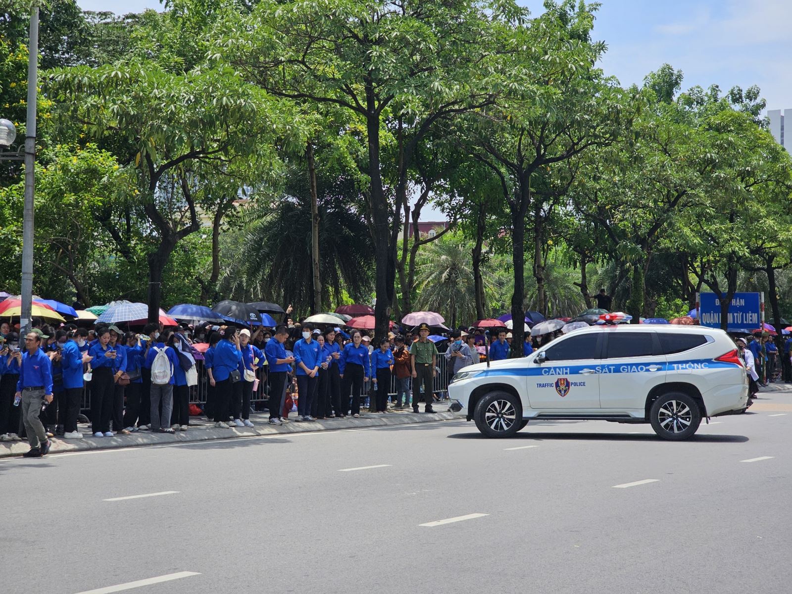 14h40: Đoàn xe chở linh cữu Tổng Bí thư Nguyễn Phú Trọng di chuyển qua sân vận động Mỹ Đình