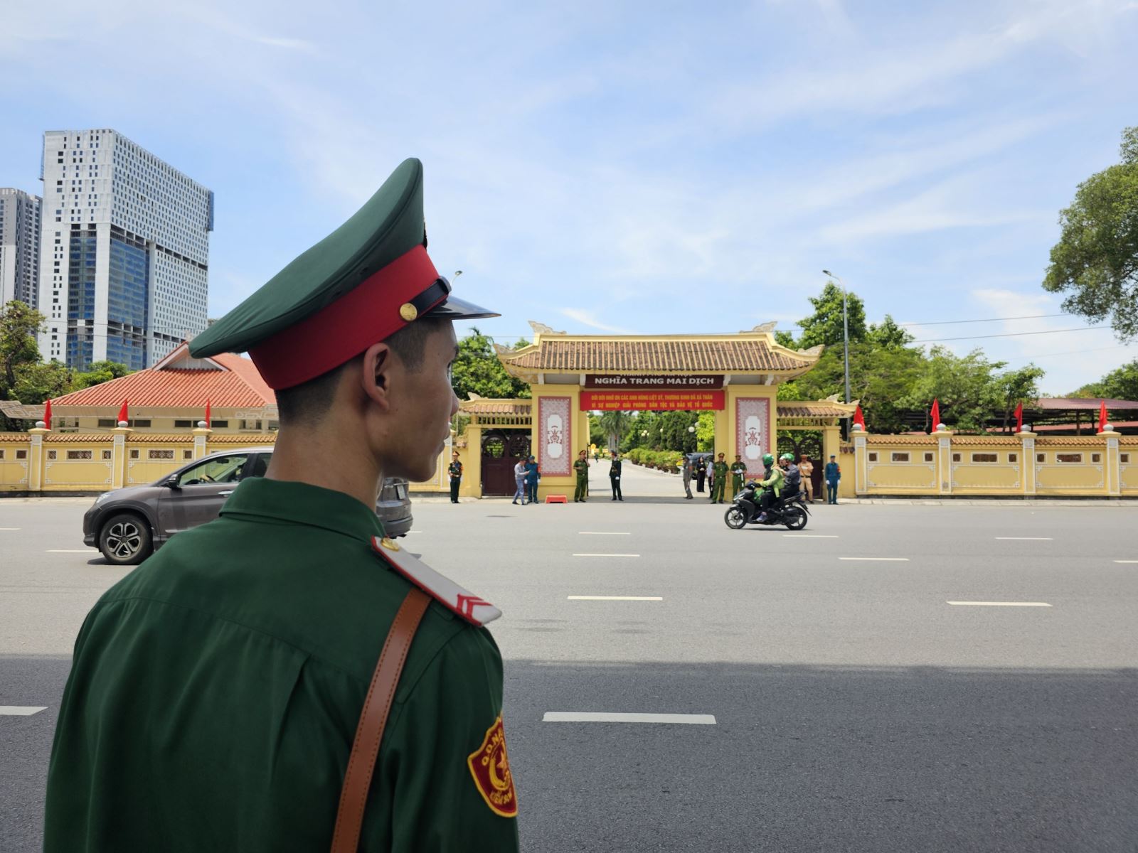 Tại khu vực Nghĩa trang Mai Dịch, mặc dù thời tiết nắng nóng, song ngay từ sáng người dân đã đổ về phía trước cửa Nghĩa trang để chờ đón đoàn xe chở lĩnh cữu Tổng Bí thư Nguyễn Phú Trọng về nơi an nghỉ cuối cùng, với chung một mong muốn tiễn biệt Tổng Bí thư lần cuối.