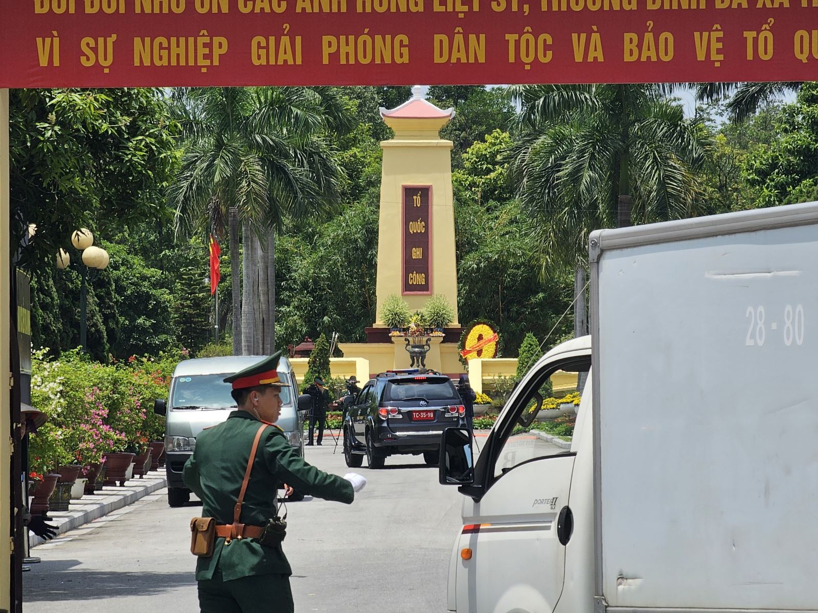 14h48: Đoàn xe chở linh cữu Tổng Bí thư Nguyễn Phú Trọng tiến vào cổng Nghĩa trang Mai Dịch