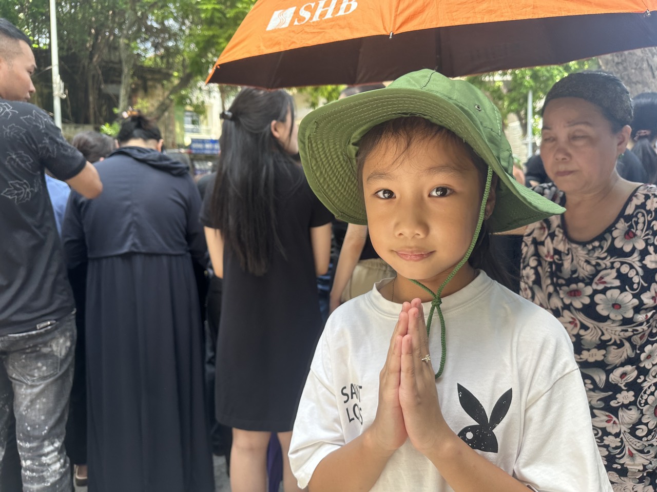 Cầm bức di ảnh Tổng Bí thư Nguyễn Phú Trọng trên tay, chị Nguyễn Thu Hằng cùng con gái đi từ Hà Đông lên Nghĩa trang Mai Dịch từ sớm để tiễn đưa Tổng Bí thư Nguyễn Phú Trọng. Chị Hằng thể hiện sự xúc động và chia sẻ chị đưa con đi cùng để các con hiểu được giá trị của độc lập, hòa bình, biết ơn công lao xây dựng, giữ gìn và phát triển đất nước của các thế hệ đi trước.