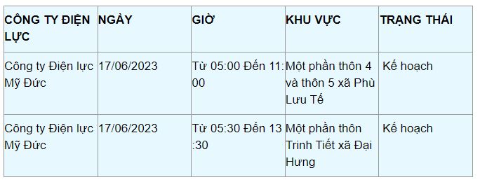 16/06/2023 17:55Lịch cắt điện Hà Nội ngày mai 17/6: Cuối tuần có nhiều thay đổi bất ngờ, cập nhật khu vực mất điện sớm và chi tiết nhất