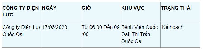Lịch cắt điện huyện Quốc Oai