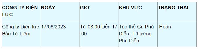 Những khu vực nêu trên ngoài hoãn thì mới chỉ đang nằm trong kế hoạch cắt điện của EVNHANOI ngày 17/6 và chưa chính thức được duyệt. Tùy theo tình hình thời tiết và kế hoạch thay đổi nên lịch cắt điện Hà Nội có thể được điều chỉnh ở một số nơi.