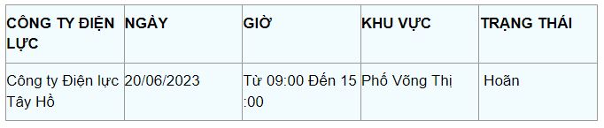 Những khu vực nêu trên, ngoài hoãn thì mới chỉ đang nằm trong kế hoạch cắt điện của EVNHANOI ngày 20/6 và chưa chính thức được duyệt. Tùy theo tình hình thời tiết và kế hoạch thay đổi nên lịch cắt điện Hà Nội có thể được điều chỉnh ở một số nơi.