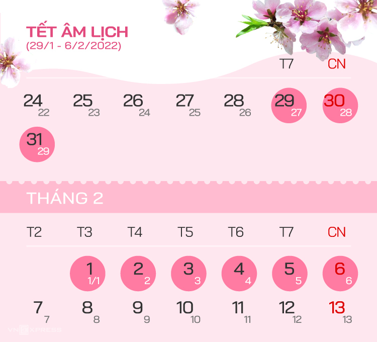 12/01/2022 03:53Lịch nghỉ lễ, Tết Nguyên đán năm 2022