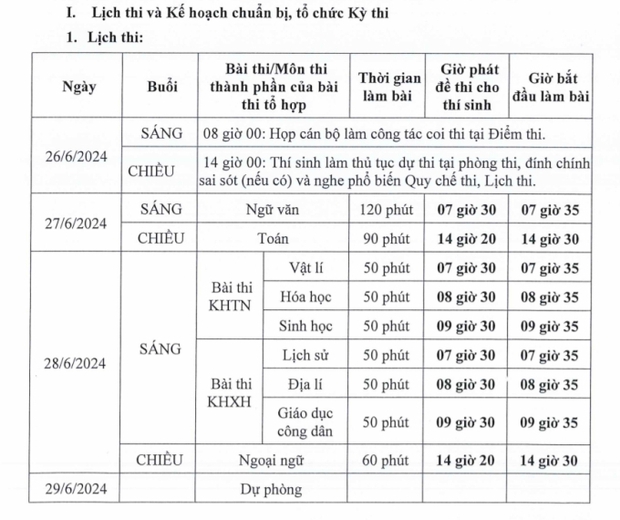 - Ngày 27, 28/6/2024: Tổ chức coi thi;