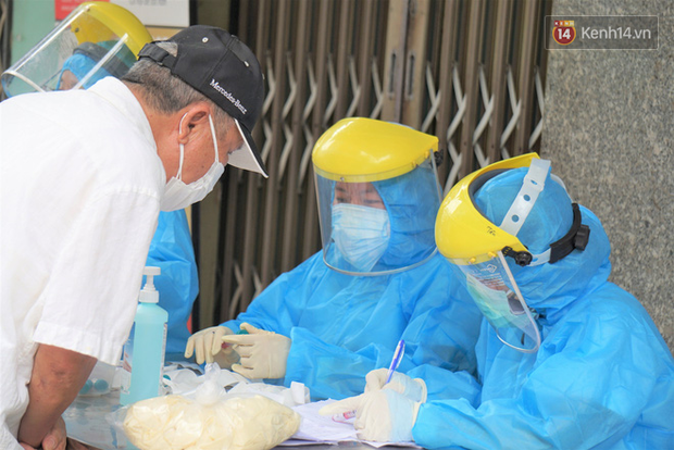 Một người dân được lấy mẫu xét nghiệm Covid-19.