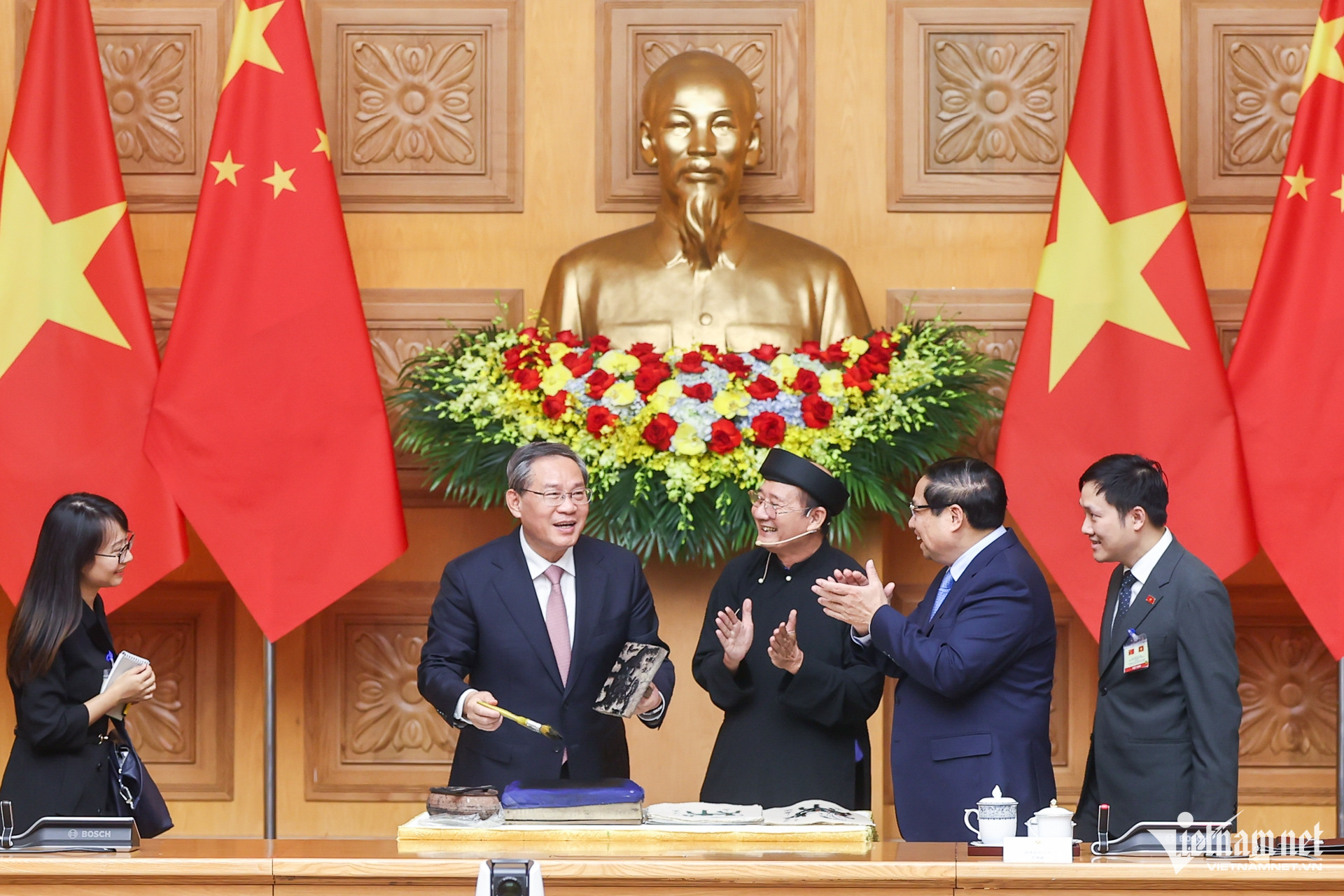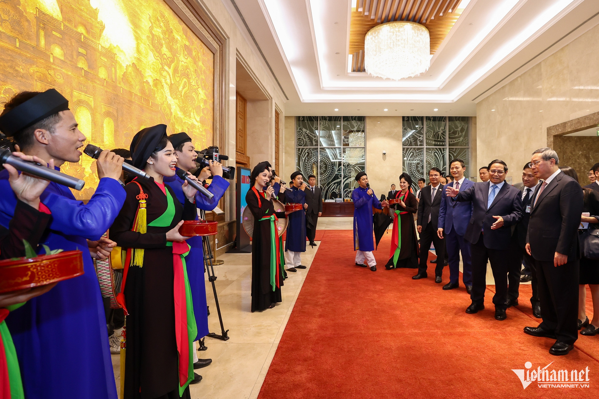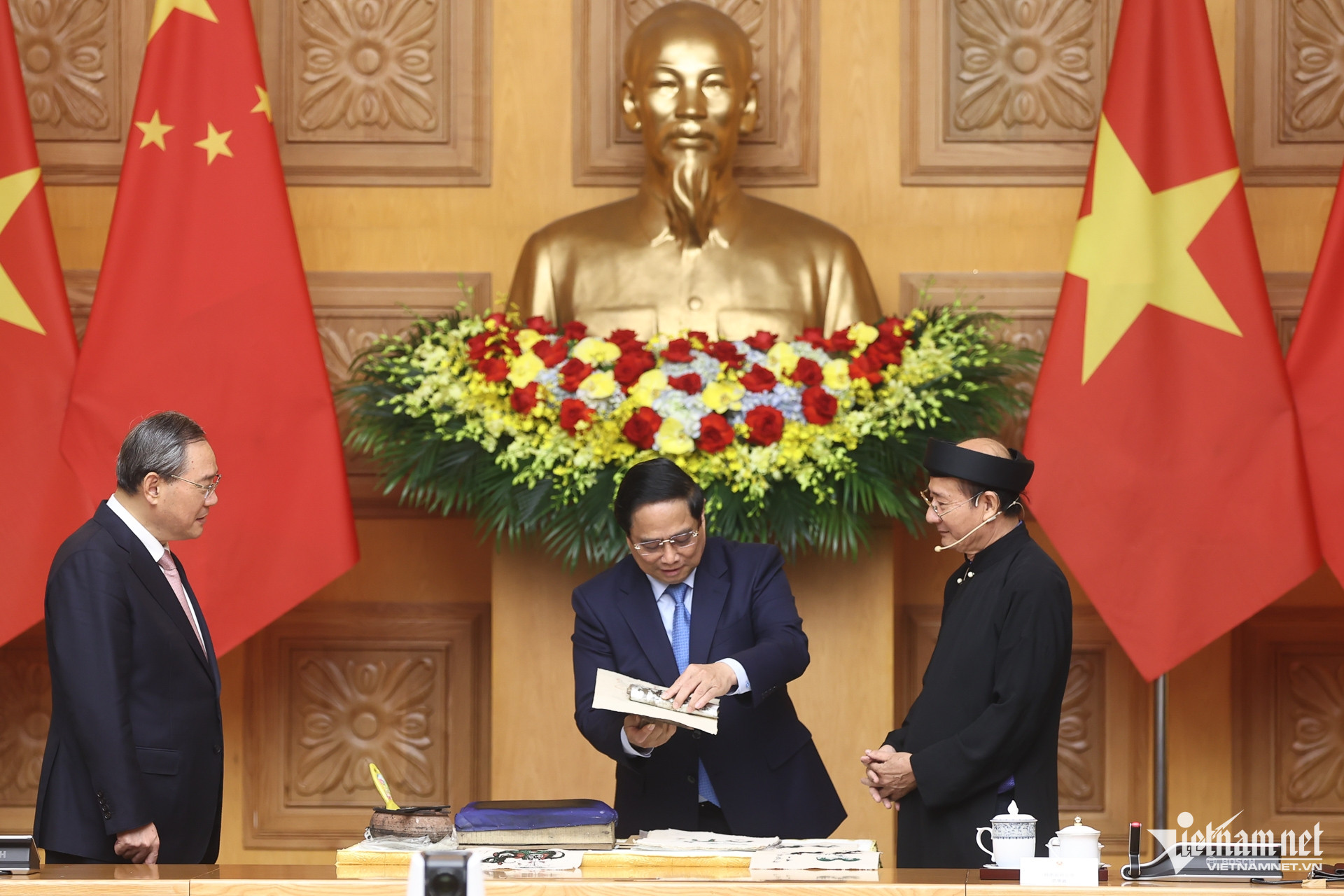 Chiều 13/10, trong lịch trình bận rộn nhân chuyến thăm Việt Nam, tại trụ sở Chính phủ, Thủ tướng Phạm Minh Chính và Thủ tướng Trung Quốc Lý Cường đã có những phút giây tìm hiểu về văn hóa nghệ thuật truyền thống của Việt Nam.