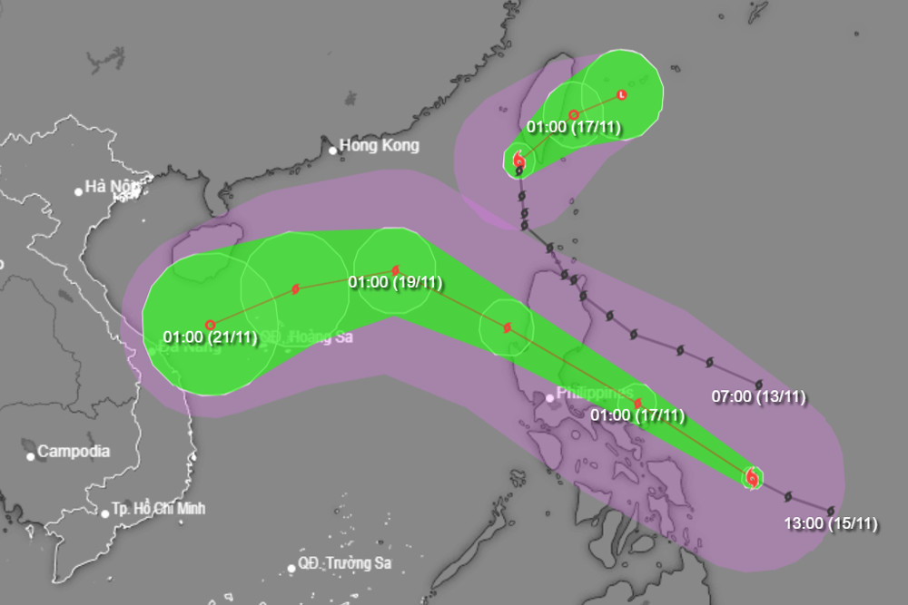 Trung tâm Dự báo khí tượng thủy văn quốc gia cho biết, hiện nay, cơn bão có tên quốc tế là Man-yi đang hoạt động trên vùng biển phía Đông miền Trung Philippines. Lúc 1h sáng nay (16/11), sức gió mạnh nhất vùng gần tâm bão mạnh cấp 15 (167-183km/h), giật trên cấp 17. Di chuyển theo hướng Tây Tây Bắc, tốc độ 20-25km/h.