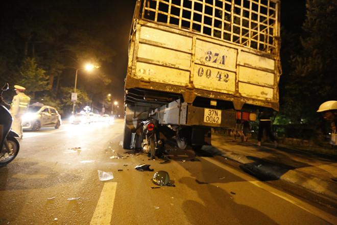 Cú tông quá mạnh khiến nam thanh niên điều khiển xe máy bị đập mạnh vào hông xe, rơi xuống đất, nằm bất động trong vũng máu. Chiếc xe máy theo đà quán tính lao thẳng lên phía trước gần chục mét.