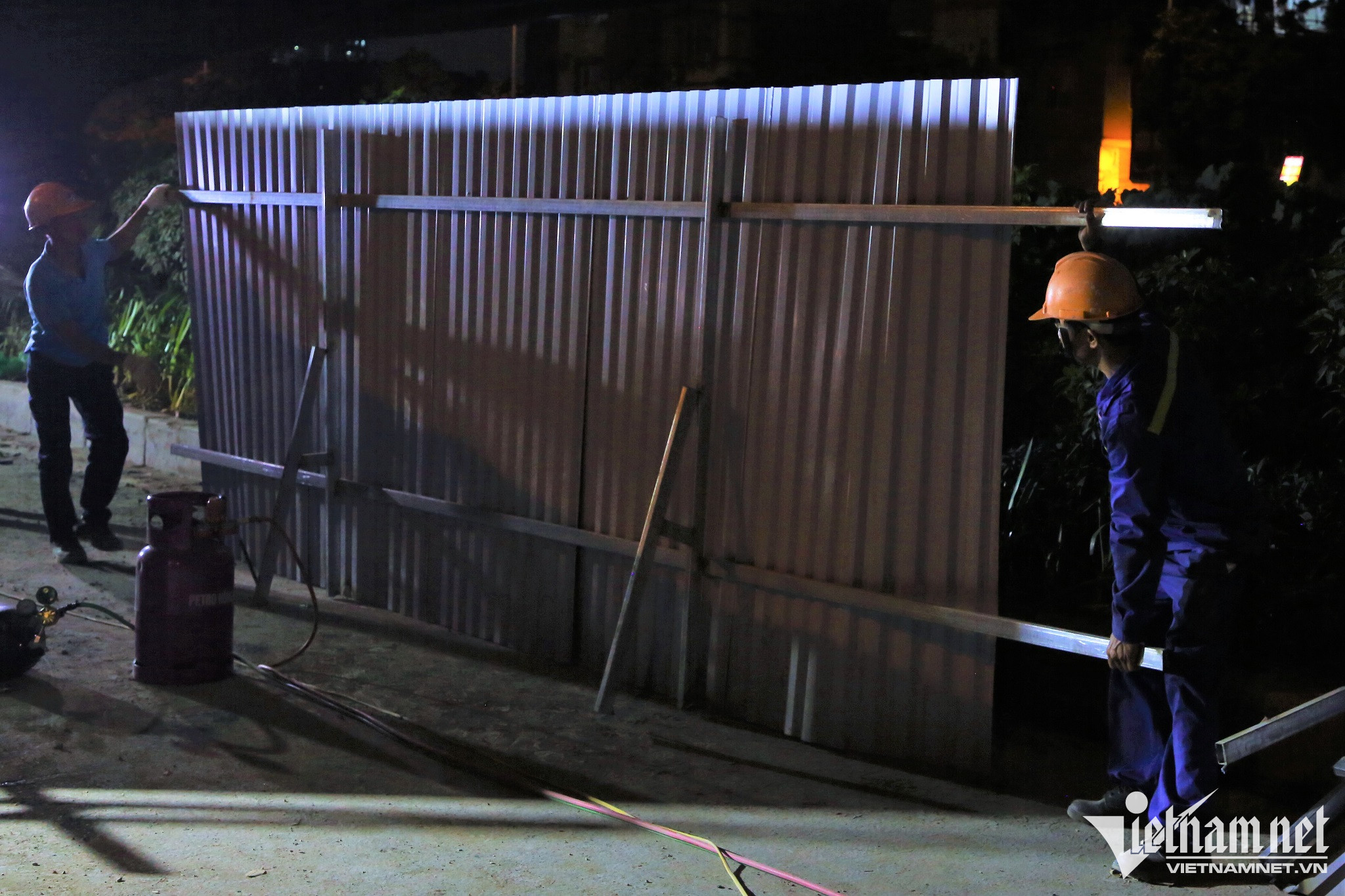 Từ 21h tối 28/11, đơn vị thi công hố ga 13.0 (trước cửa số nhà 306 đường Nguyễn Xiển, phường Đại Kim, quận Hoàng Mai) thuộc gói thầu số 2, dự án hệ thống xử lý nước thải Yên Xá, TP Hà Nội đã tiến hành thu hẹp rào chắn đường nhằm giảm ùn tắc giao thông qua khu vực này.