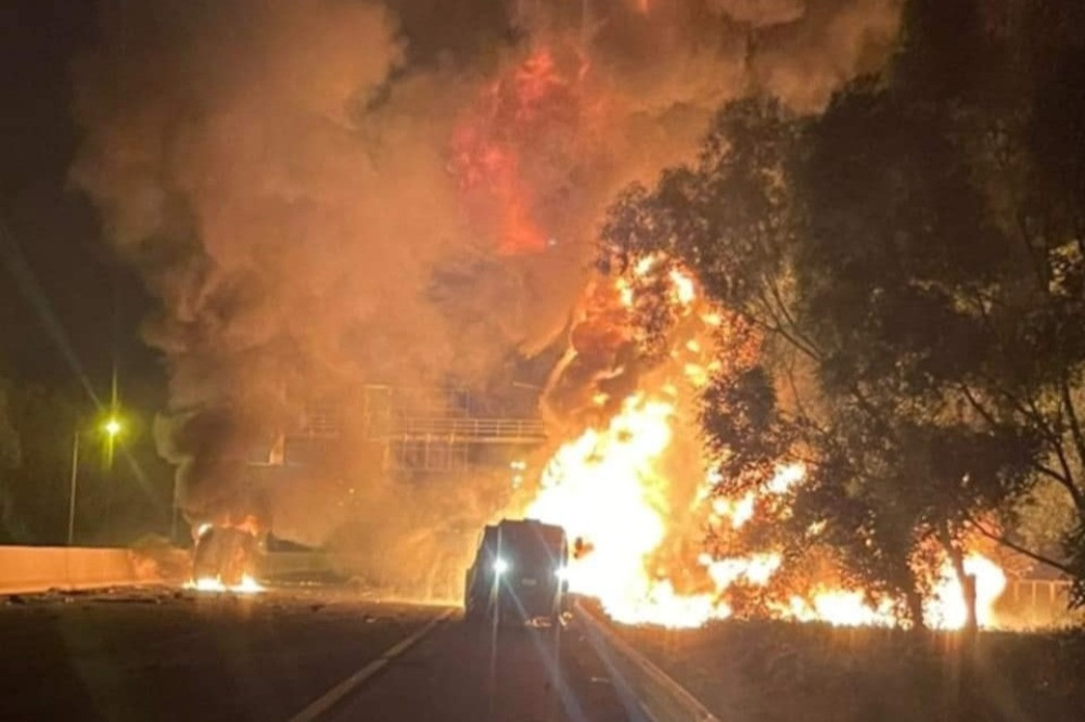 Sau đó, xe bồn chở xăng đâm trúng xe tải khiến ông V.V.Th. tử vong, xăng tràn ra cao tốc gây hỏa hoạn. Tài xế điều khiển xe bồn bị chấn thương sọ não, gãy xương sườn bên phải.