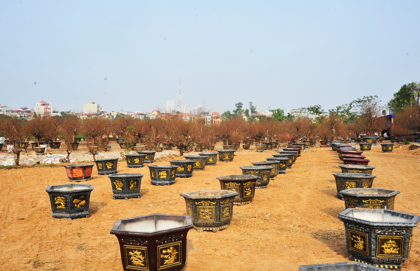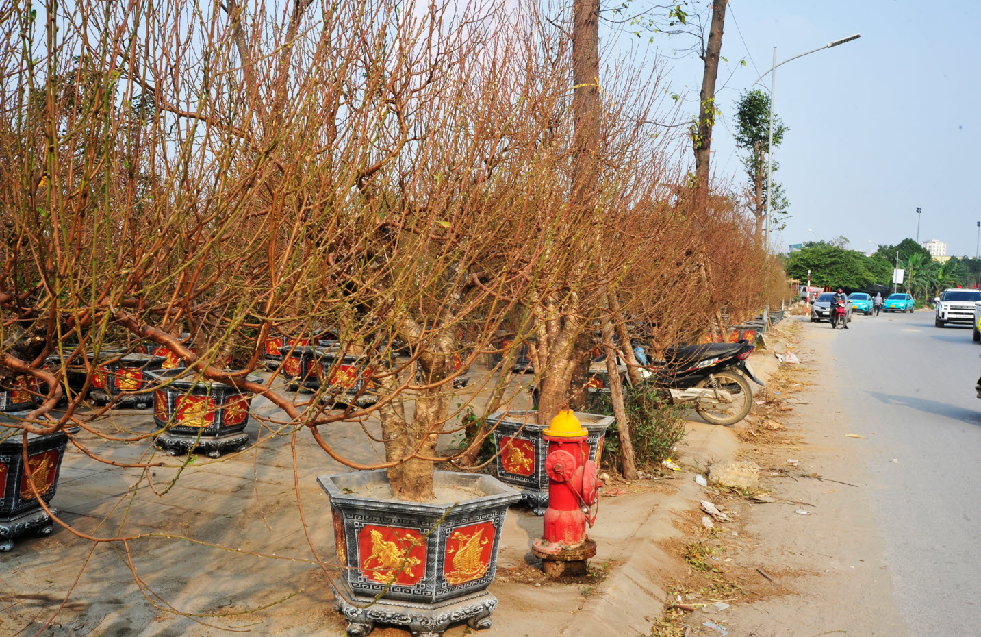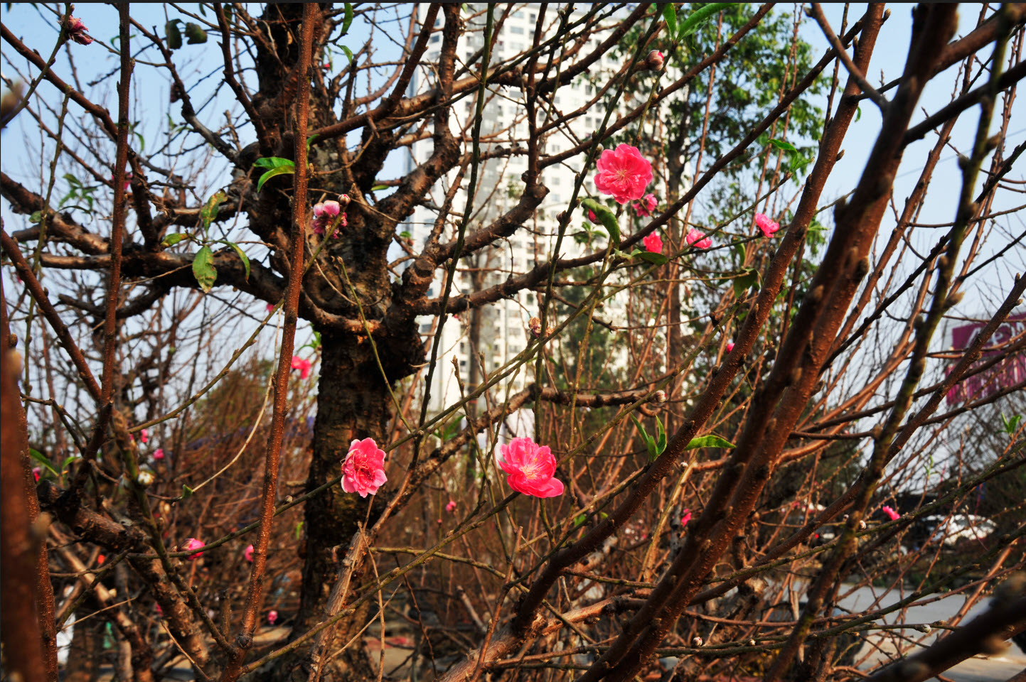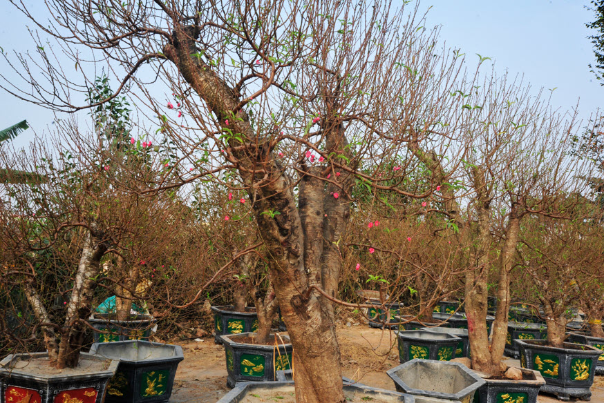 Còn đúng 1 tháng nữa là Tết Nguyên đán, các chợ hoa trên địa bàn Hà Nội đã bắt đầu bày bán cây cảnh, trong đó đa số dành vị trí để bày chậu hoa đào.