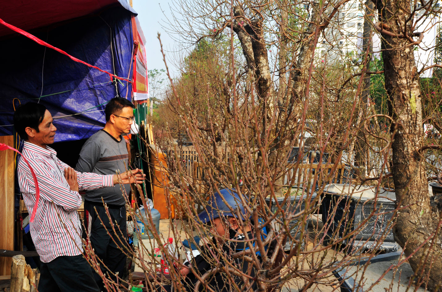 “May mắn hôm nay vào đúng ông chủ vườn cùng họ Dương, tin tưởng chỗ người quen nên tôi đã đặt cọc được 2 cây đào thế, sau ông Công ông Táo chủ vườn sẽ chở đến tận nhà, giá không thay đổi”, ông Minh phấn khởi.