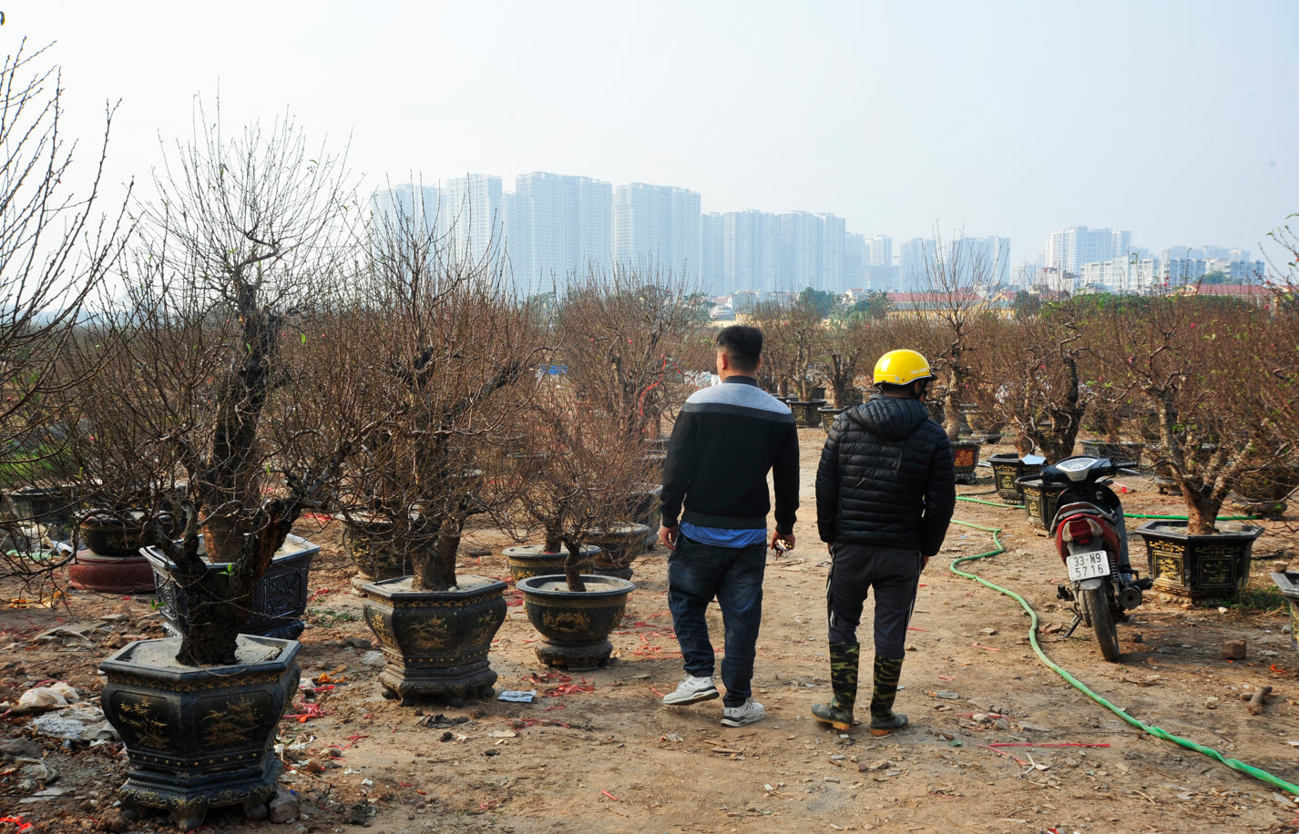 Ông Dương Văn Minh- khách hàng ở quận Hà Đông chia sẻ, dự đoán năm nay khan hiếm đào chơi Tết, tranh thủ ngày nghỉ ông Minh đi thăm vườn để đặt hàng.