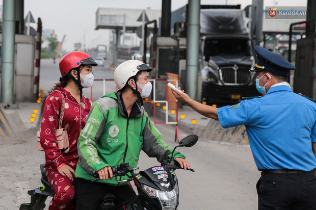 Ghi nhận tại chốt cầu Đồng Nai (ngay trạm thu phí Biên Hoà) lực lượng chức năng chốt trực, yêu cầu các phương tiện chủ yếu là xe máy từ TP.HCM đến Đồng Nai đều phải dừng lại kiểm tra y tế.