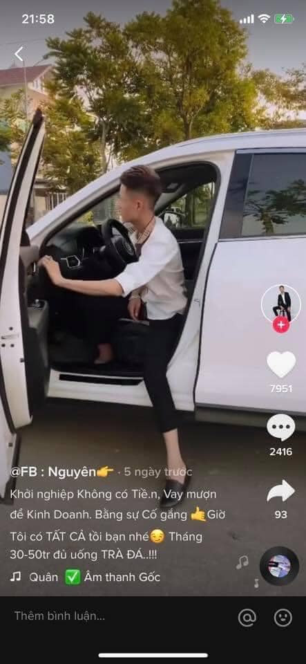 Trước đó, trên mạng xã hội cũng từng xôn xao câu chuyện ông kia, bà này khoe xe được tặng hoặc tự mua nhưng bị bóc mẽ chỉ là... đi mượn. Và chiêu trò của những "chủ tịch, CEO, Boss" kinh doanh tài ba này chính là thuê 1 xe rồi cả hội thay nhau check-in, quay clip up Facebook, Tiktok cho thiên hạ lác mắt.