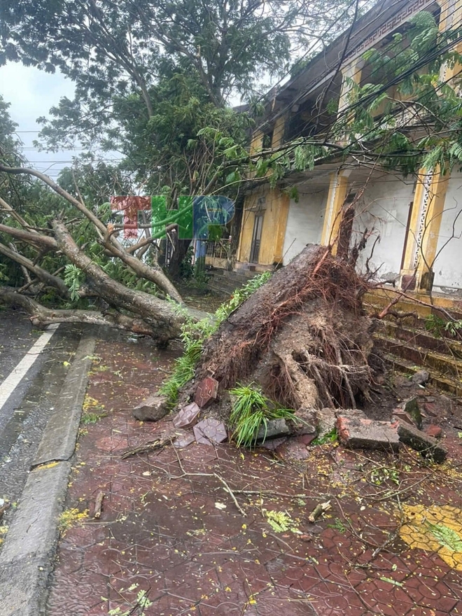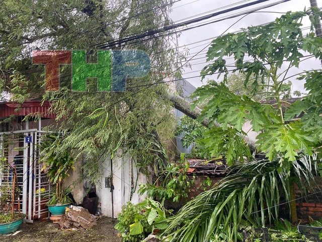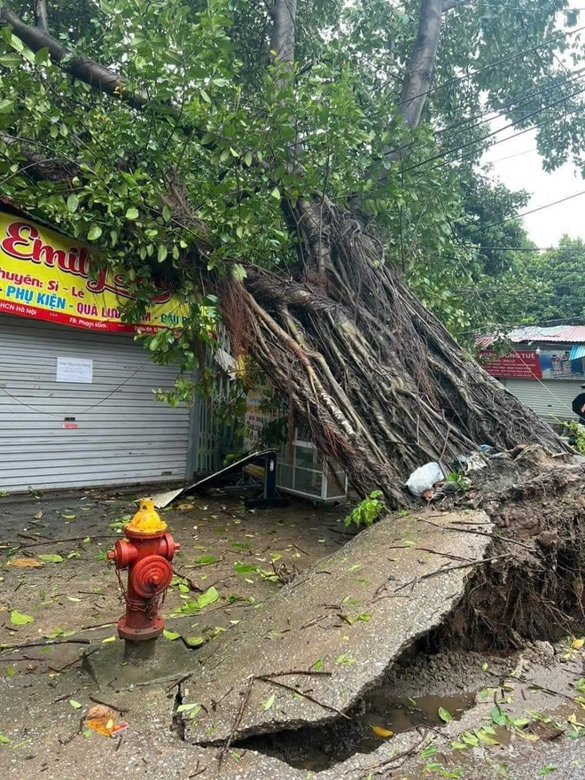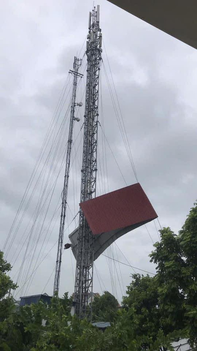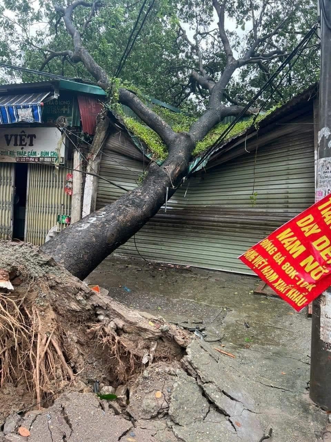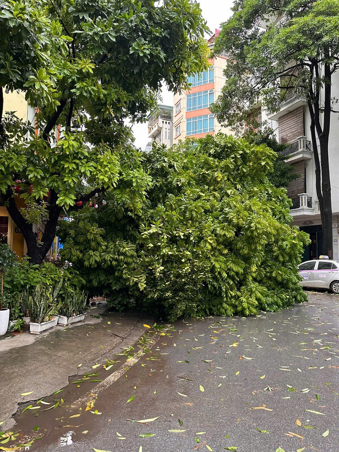 Hà Nội: Hàng loạt mái tôn bị thổi bay, cây bật gốc la liệt khắp đường