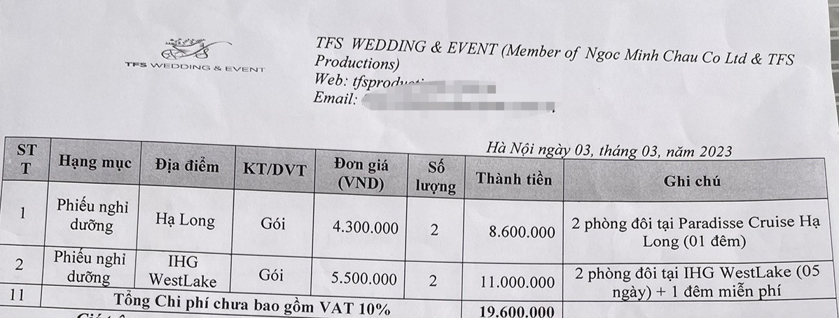 Ngoài các đơn vị cung cấp dịch vụ cho đám cưới của chị Hà, nhiều đơn vị khác từng làm việc với chị Ngọc Anh đã liên hệ với báo VietNamNet để phản ánh việc phía công ty TFS sử dụng dịch vụ nhưng chưa trả đủ tiền.
