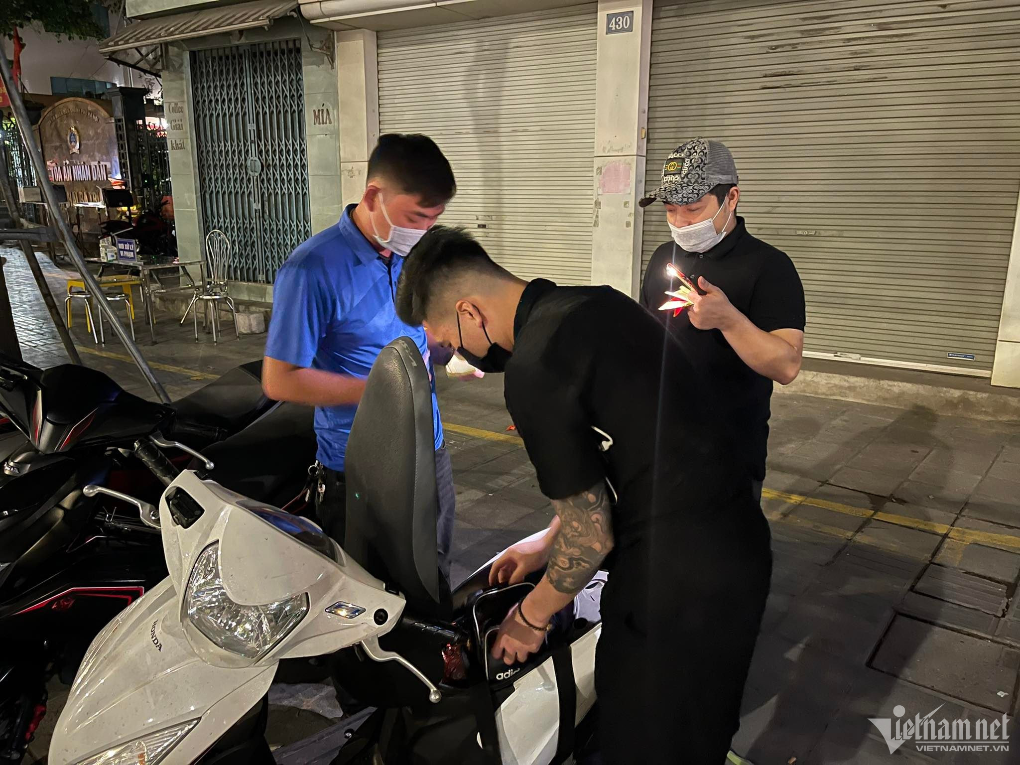 Thời điểm 21h20 cùng ngày, tổ công tác yêu cầu xe máy mang BKS 29D2-077.XX dừng xe để kiểm tra. Thời điểm dừng phương tiện, xe này chở theo 2 người đàn ông đều không đội mũ bảo hiểm.
