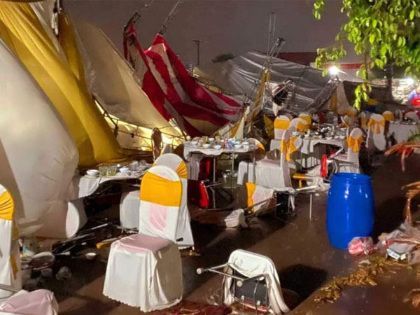 Thời điểm này đang có hàng trăm khách mời dự tiệc. Khi thấy gió quật nghiêng rạp cưới, khách dự tiệc đã bỏ bàn tiệc chạy tán loạn ra ngoài. Chỉ chưa đầy 1 phút sau, toàn bộ rạp cưới rộng hàng trăm mét vuông cao khoảng 6m đã bị hất tung, sau đó sập đổ xuống mặt đất, khiến bàn ghế, bát đũa rơi vung vãi khắp nơi.