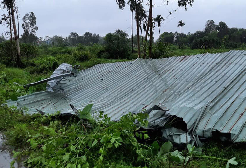 “Trận lốc xoáy quét qua trong thời gian ngắn, nhưng nhiều nhà trong thôn bị tốc mái và hư hỏng, có 4 trụ điện bị gãy đổ, cây trồng bị quật ngã hàng loạt...”, anh Tin kể.