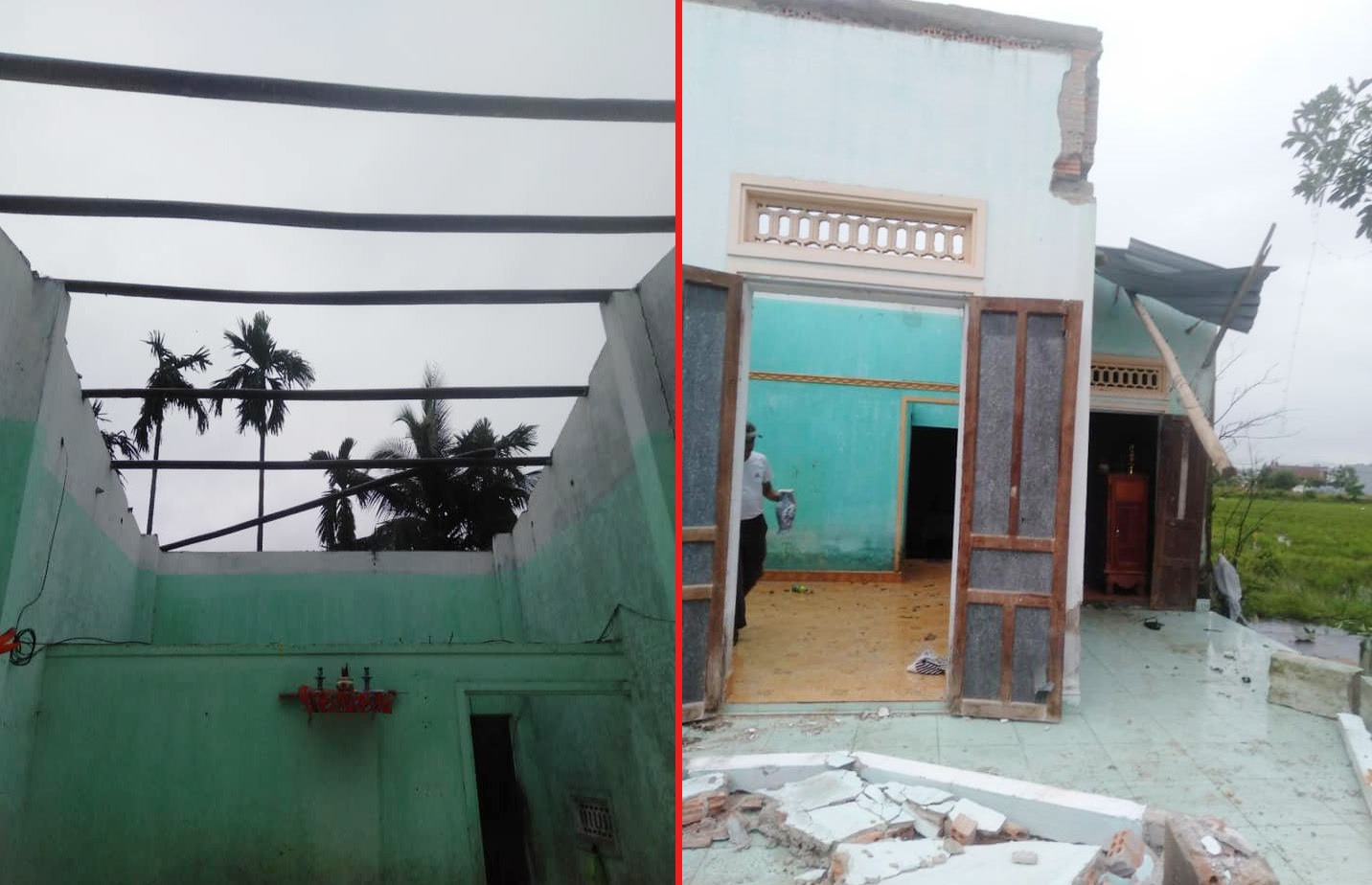 Trao đổi với VietNamNet tối 27/10, Chủ tịch xã Hòa Khương (huyện Hòa Vang, Đà Nẵng) Nguyễn Chí Trí cho biết, trận lốc xoáy xảy ra ở thôn Phú Sơn Tây làm 20 nhà dân bị hư hỏng. Trong đó, có 4 ngôi nhà bị tốc mái hoàn toàn...