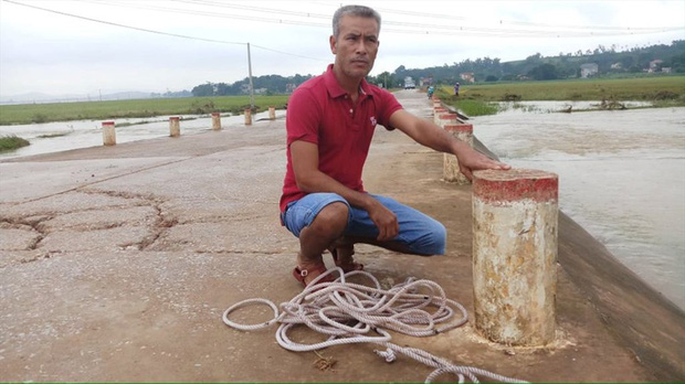 “Lúc đó, tôi thấy tài xế trèo lên nóc xe, đi lại trên đó, nhiều người phụ nữ lò đầu qua ô cửa kính như cầu cứu. Ngay lập tức tôi chạy về nhà lấy đoạn dây thừng ra và hô hoán thêm 1, 2 người nữa, một đầu tôi buộc vào cột mốc ven đường, còn đầu kia tôi cầm lao xuống dòng lũ và buộc vào thân chiếc xe, cho những nữ công nhân trên xe bám và đi vào bờ” – anh Dương nhớ lại.