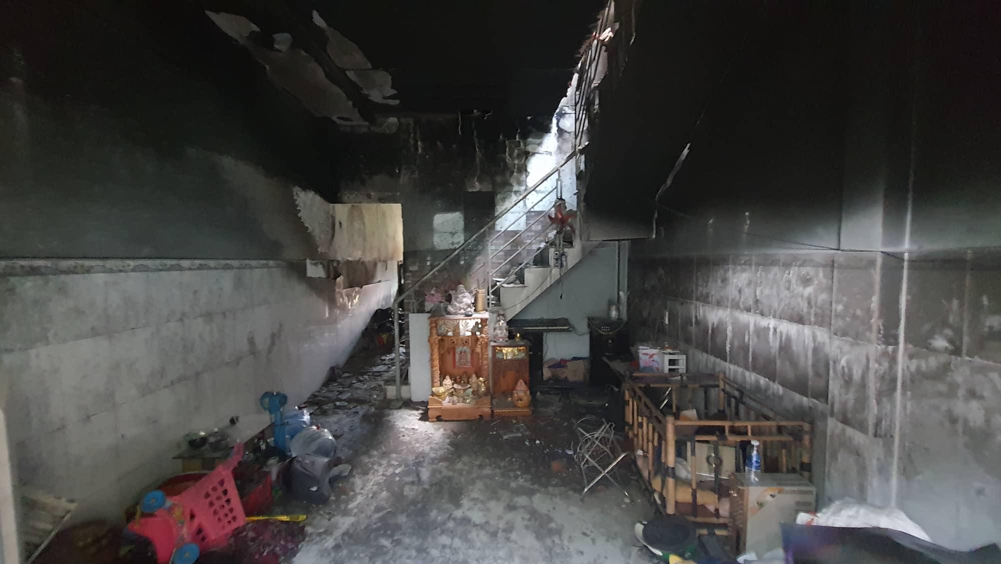 Theo ghi nhận, căn nhà xảy ra hỏa hoạn nằm trong con hẻm nhỏ. Vụ cháy làm khu vực tầng trệt căn nhà tan hoang, nhiều vật dụng cháy đen, tường ám khí đen. Cách căn nhà xảy ra hỏa hoạn chừng 20m, gia đình cùng hàng xóm đang tổ chức tang lễ cho hai em nhỏ.