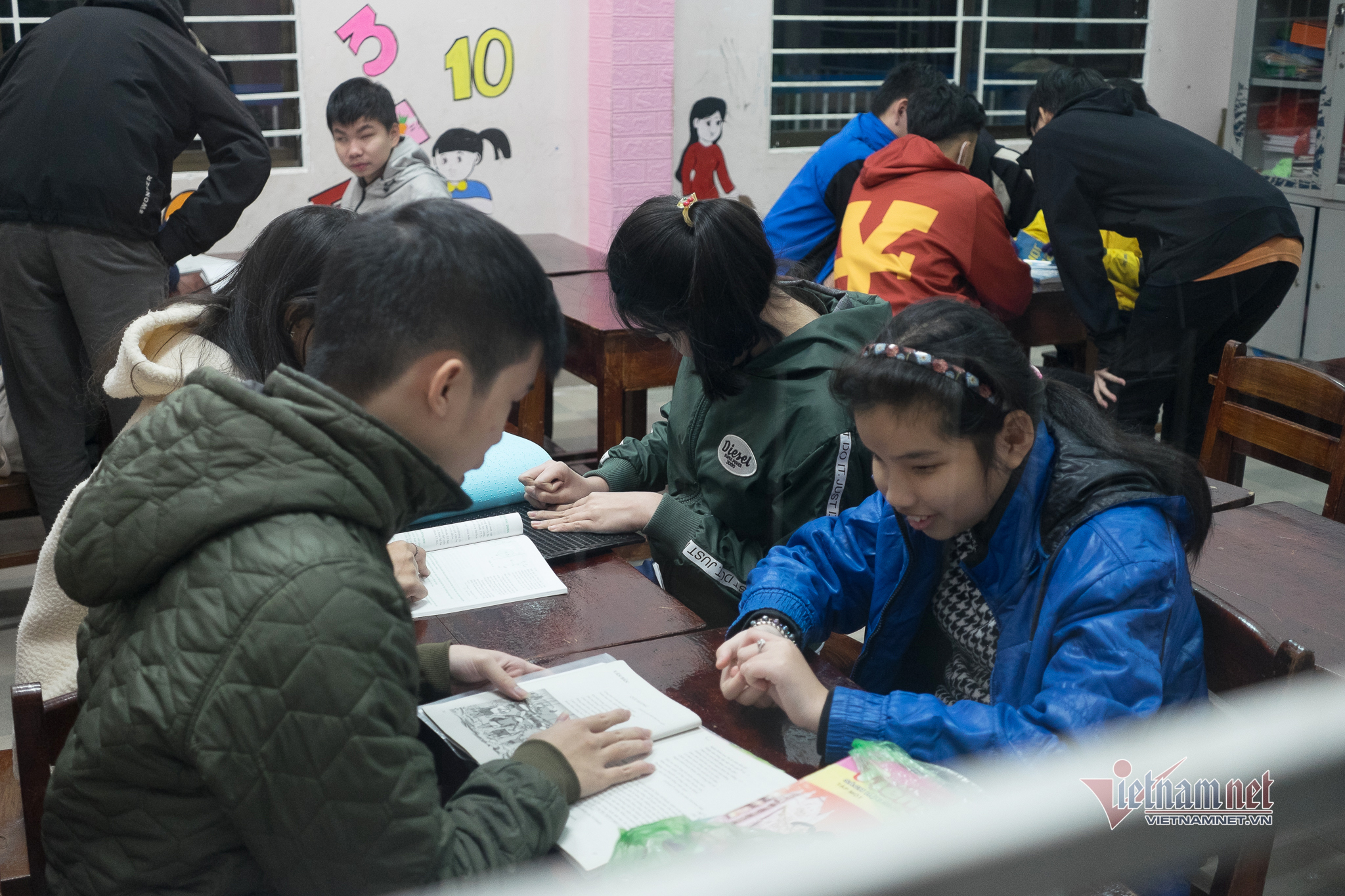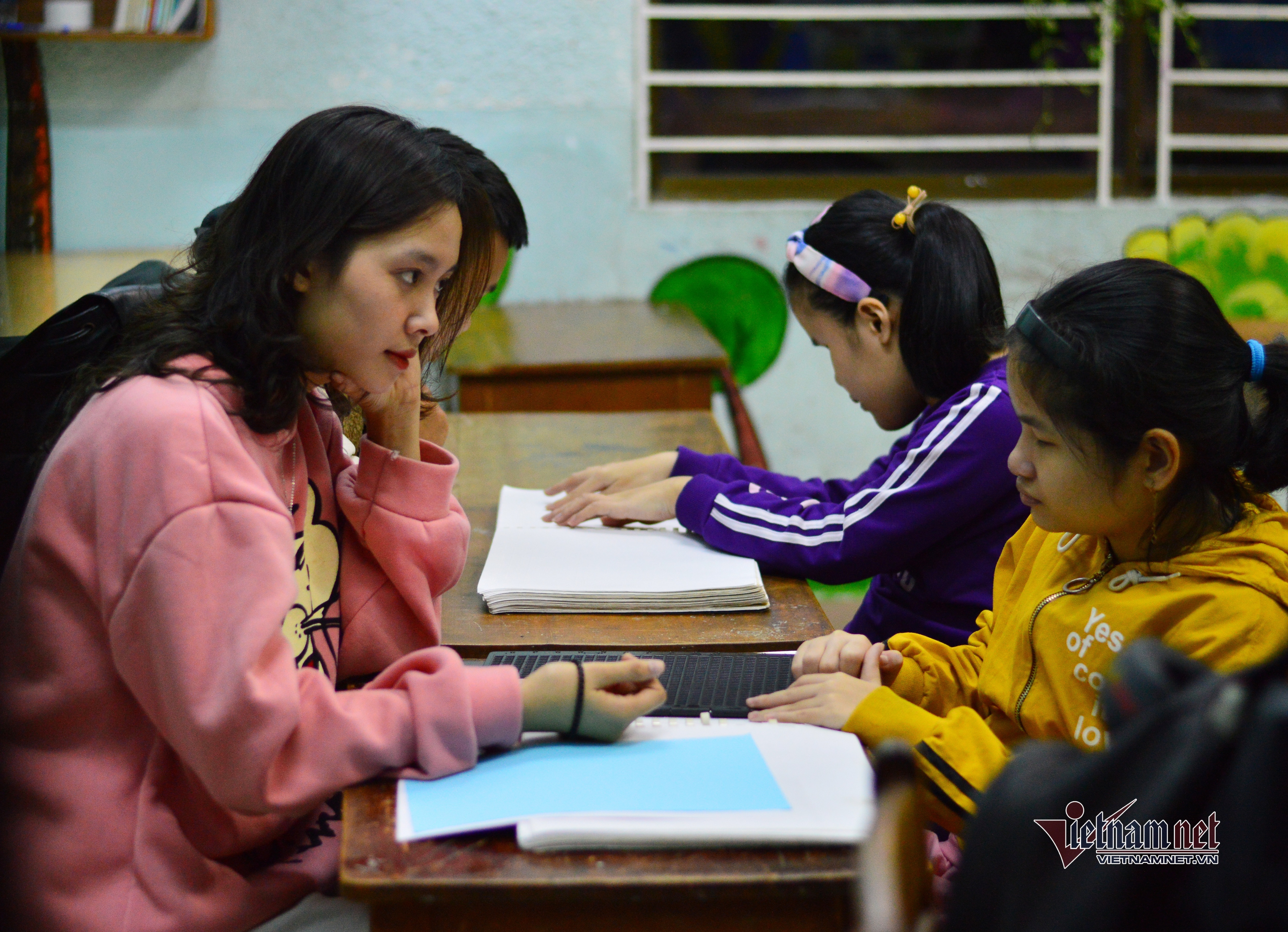 Những giáo viên không chuyên sẽ đọc bài trong sách để các học sinh khiếm thị chuyển thành chữ nổi. Bên cạnh đó, hướng dẫn học bài, củng cố kiến thức trên lớp, hỗ trợ các em giải bài tập về nhà.