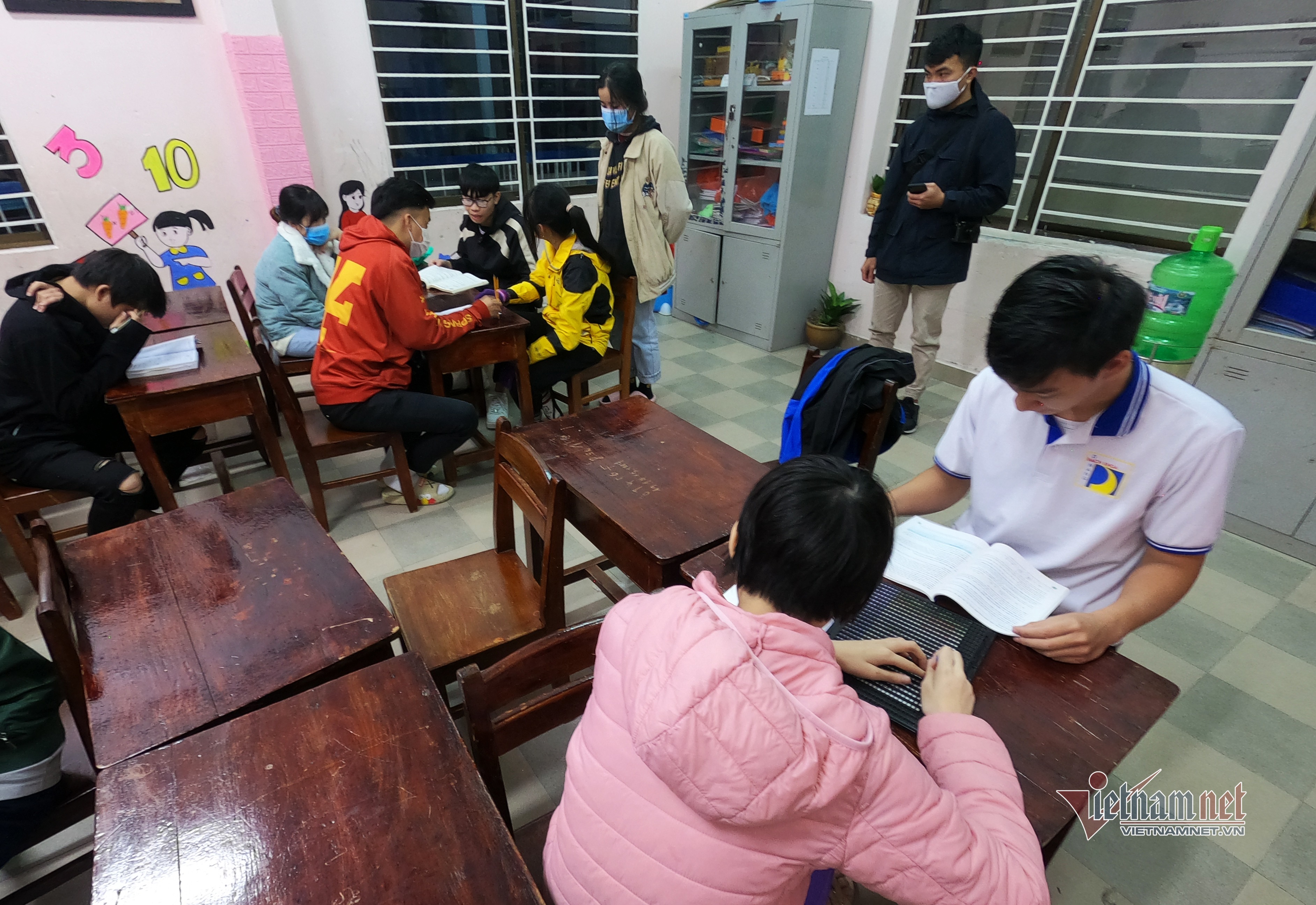 Tại trung tâm, học sinh có nhiều độ tuổi khác nhau, được chia theo từng nhóm lớp, với hình thức dạy “một kèm một”.