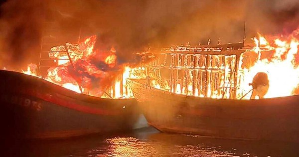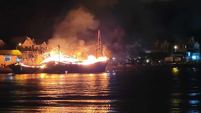 Thời điểm này, số lượng tàu cá công suất lớn đang neo đậu tại cảng Lạch Quèn rất lớn, mật độ dày đặc. Nhiều chiếc tàu bị nhấn chìm trong biển lửa.