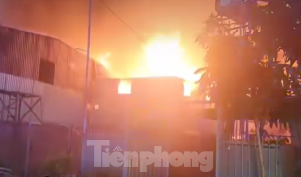| Lửa bùng cháy dữ dội, bao trùm nhà xưởng vật liệu xây dựng ở Bình Dương |