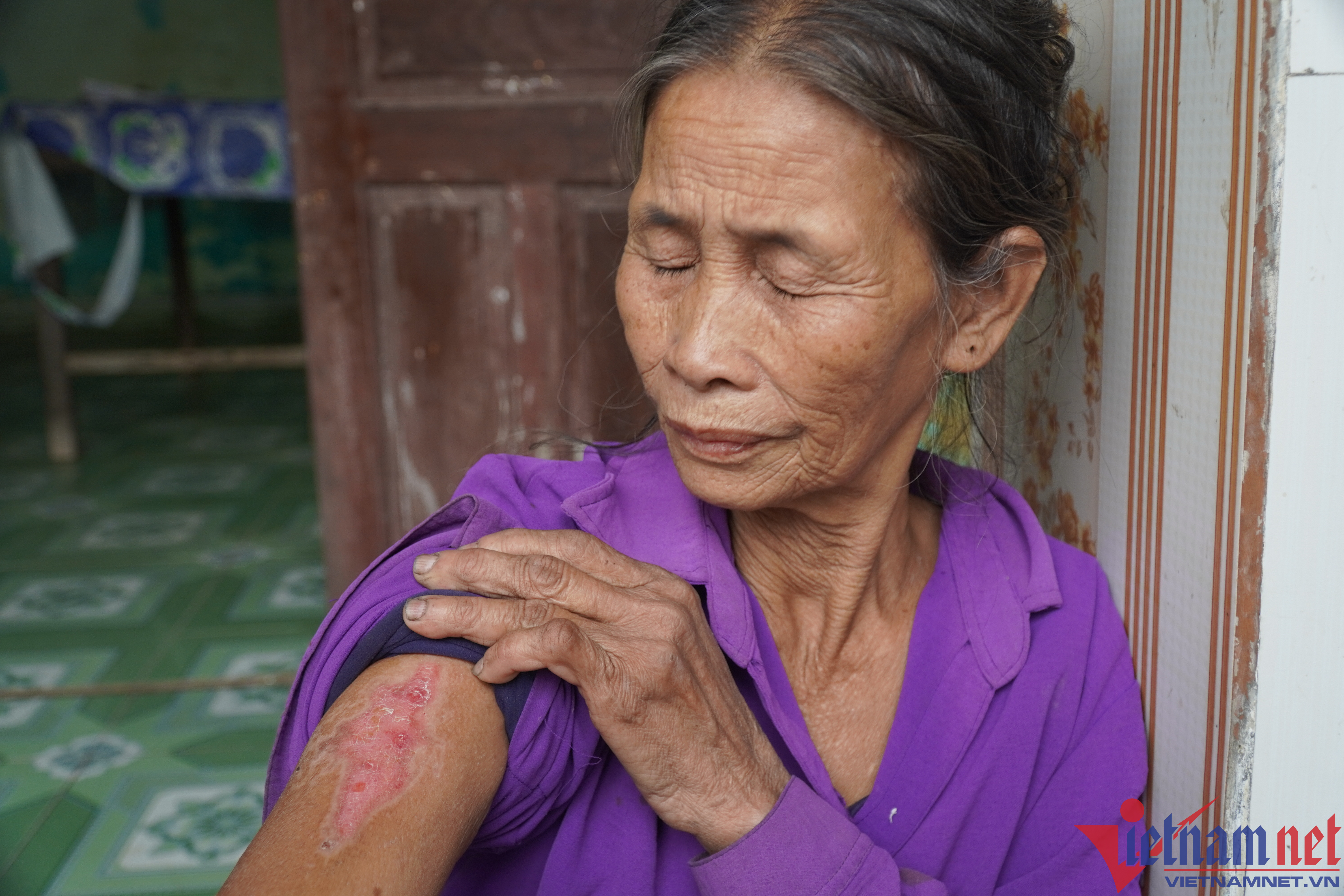 Vào tháng 10/2022, con anh Nam mới được hơn 3 tháng đang nằm ở giường. Chiếc màn và rèm gi đô bốc cháy, mẹ anh là bà Hà Thị Diến (68 tuổi) vội lao vào dập lửa để bế cháu ra ngoài.