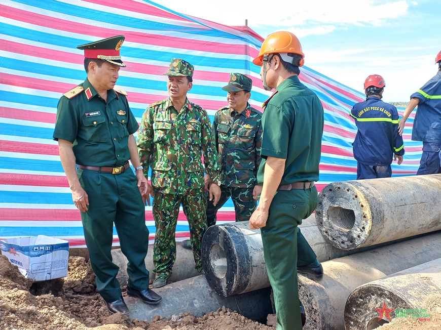Cũng trong sáng 3-1, Thiếu tướng Nguyễn Minh Triều, Phó tư lệnh Quân khu 9 đã có mặt tại hiện trường kiểm tra công tác cứu hộ và động viên cán bộ, chiến sĩ cũng như gia đình bé trai bị kẹt trong trụ bê tông.