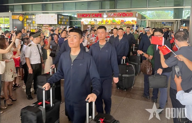 Tại sân bay, đại diện lãnh đạo Quân đội Việt Nam bày tỏ niềm vui mừng khi được đón đoàn Quân giải phóng nhân dân Trung Quốc. Đồng thời chúc đoàn tiếp tục luyện tập, hoàn thành tốt nhiệm vụ tham gia diễu binh, diễu hành, góp phần vào thành công chung của lễ kỷ niệm.