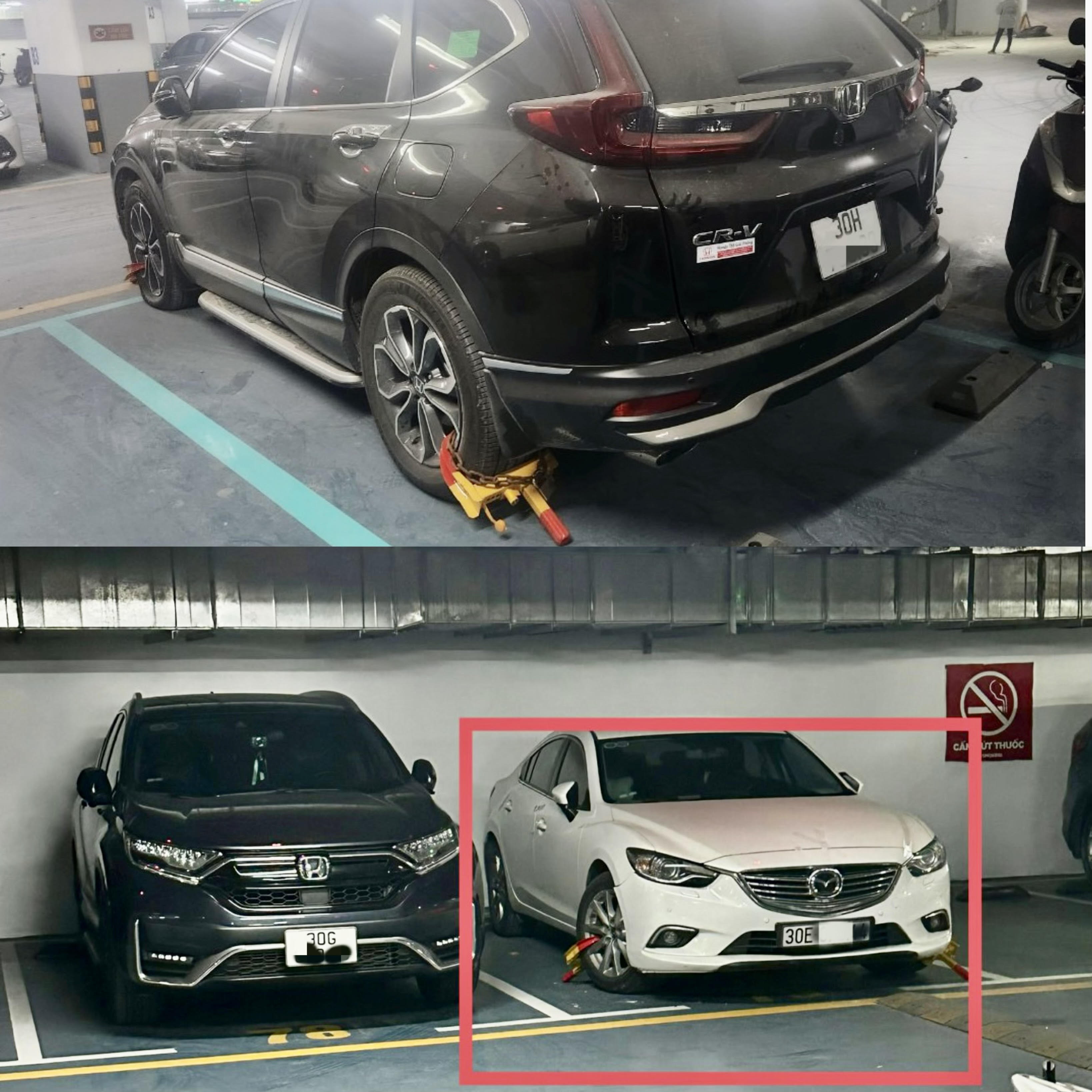 Sự việc càng trở nên căng thẳng khi nhiều xe ô tô bị khoá bánh tại tầng hầm chung cư. Theo chủ đầu tư đây là những xe cố ý chặn cửa hầm ra sau khi được xe cẩu đưa về vị trí đỗ.