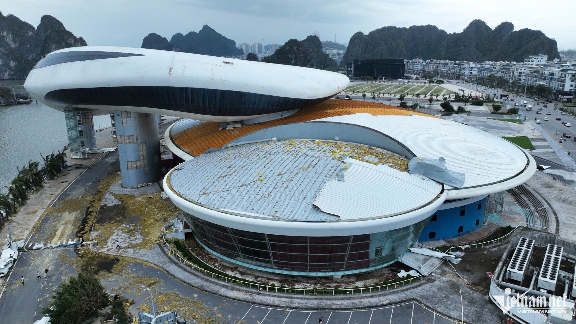 Ngày 3/10, theo ghi nhận của PV VietNamnet tại TP Hạ Long, dù bị hư hại sau bão số 3 nhưng tới nay Cung quy hoạch, hội chợ và triển lãm tỉnh Quảng Ninh và Bảo tàng tỉnh Quảng Ninh chưa được sửa chữa.