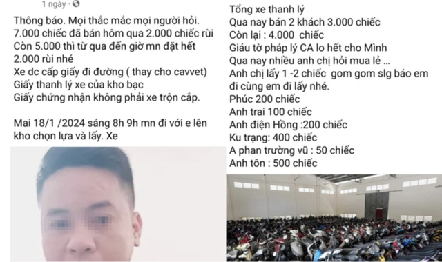 Tuy nhiên, ông T. đã vào bãi xe tự ý quay clip phát trên Facebook và nói rằng bán "7.000 xe thanh lý".