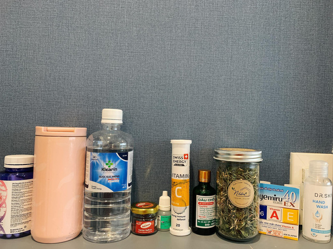 Sau cùng, chị đưa máy đo huyết áp, đo nhiệt độ và đo chỉ số SpO2 (độ bão hòa oxy trong máu ngoại biên), ấm đun nước sôi, thuốc men, vitamin C vào phòng cách ly riêng, sẵn sàng bước vào "trận chiến".