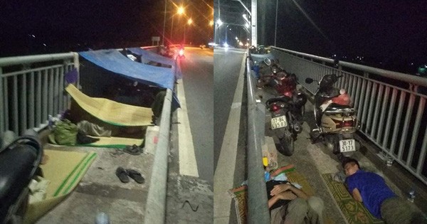 Những hình ảnh lan truyền trên mạng xã hội cho thấy hàng chục người căng bạt, nghỉ tạm vạ vật bên làn đường dành cho xe thô sơ trên cầu Triều Dương. Trong số này, có nhiều phụ nữ, người già và trẻ nhỏ.