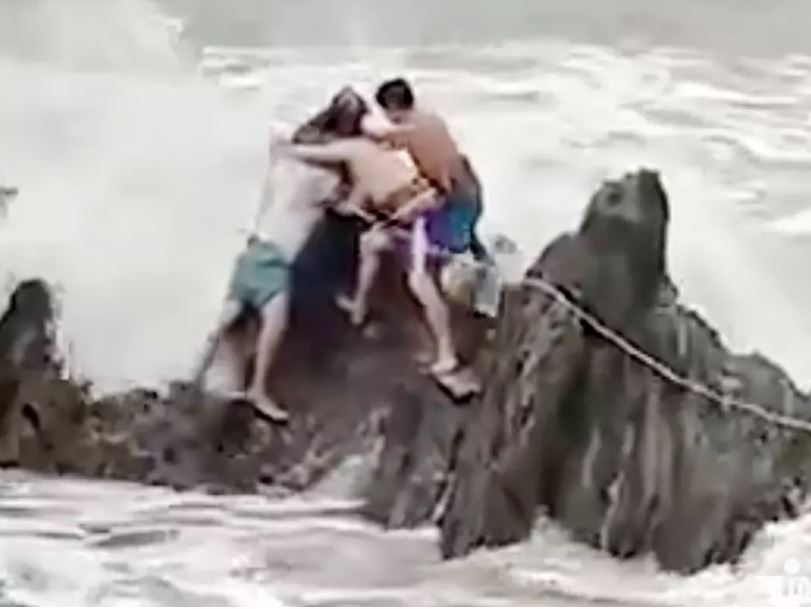 Rất may, sau khi bị cuốn trôi, du khách biết bơi nên đã kịp bám vào những mỏm đá xung quanh đó rồi trèo lên.