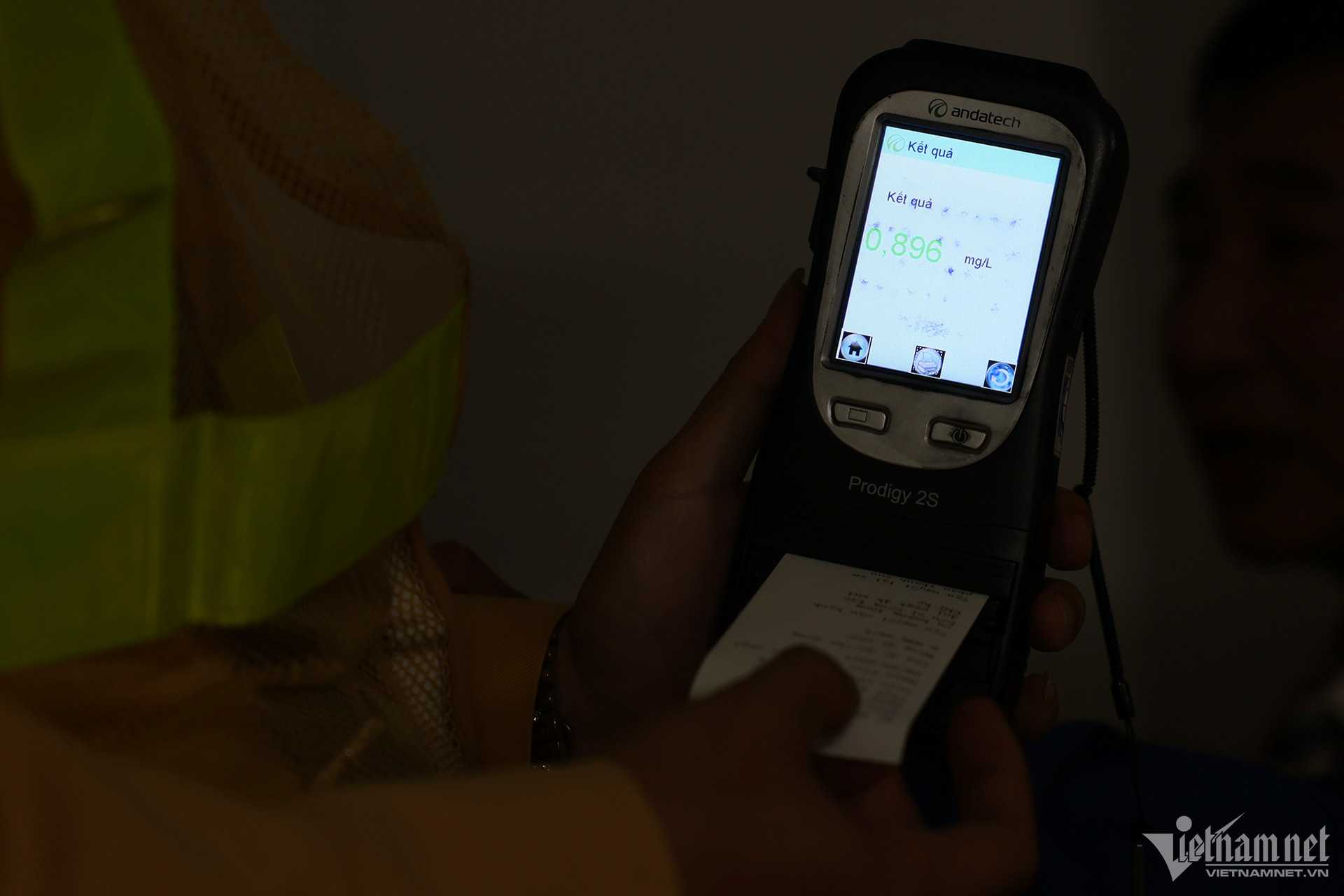 Đo nồng độ cho thấy, tài xế S. vi phạm ở mức 0,896 mg/L khí thở, mức vi phạm này cao gấp 2,24 lần mức vi phạm "kịch khung". Tài xế S. đã bị Tổ công tác lập biên bản với các lỗi: Vi phạm nồng độ cồn, không có giấy phép lái xe, không có đăng ký xe.