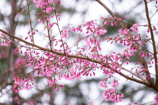 Tại các địa điểm như dọc Quốc lộ 24, đường Võ Thị Sáu, đường Phan Bội Châu, Quảng trường Trung tâm huyện Kon Plong, Vườn nghệ thuật Măng Đen, hồ Đam Bri... hoa mai anh đào rực rỡ khoe sắc hồng.