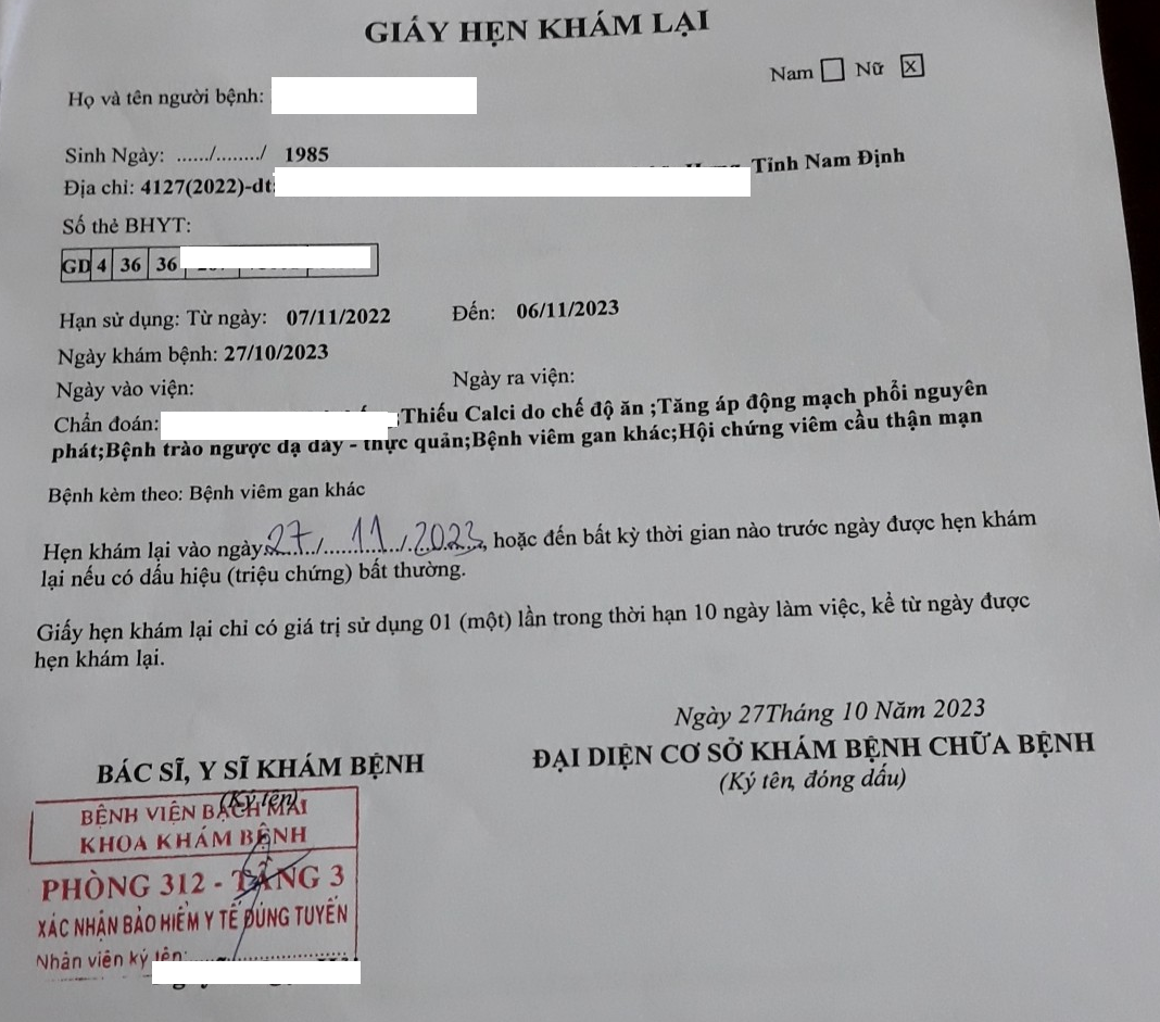Vợ chồng chị H.T. (SN 1985) là chủ một nhà hàng có lượng khách hàng đều, thu nhập ổn định ở một làng quê thuộc tỉnh Nam Định. Giữa năm 2022, thấy sức khỏe có dấu hiệu suy giảm, chị T. lên Hà Nội khám. Nhận kết quả của bệnh viện, chị T. suy sụp. Từ một người phụ nữ năng động, căn bệnh tai quái khiến chị dần không còn khả năng lao động, chỉ quanh quẩn ở nhà.