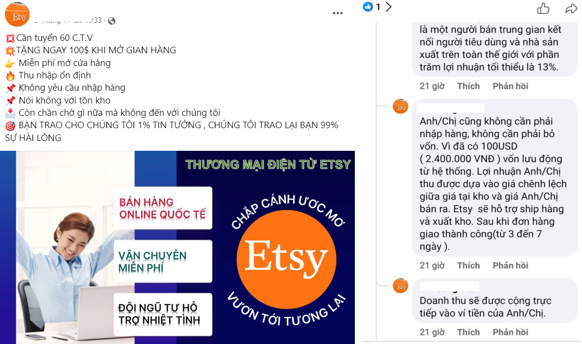 Nếu tham gia hệ thống này, chị T. sẽ được tặng một số vốn là 100 USD và miễn phí mở 1 gian hàng trên trang thương mại điện tử (TMĐT) nổi tiếng quốc tế. Phía đối tác cam kết chị sẽ có thu nhập ổn định, nếu chịu khó còn nhận nhiều ưu đãi khác.