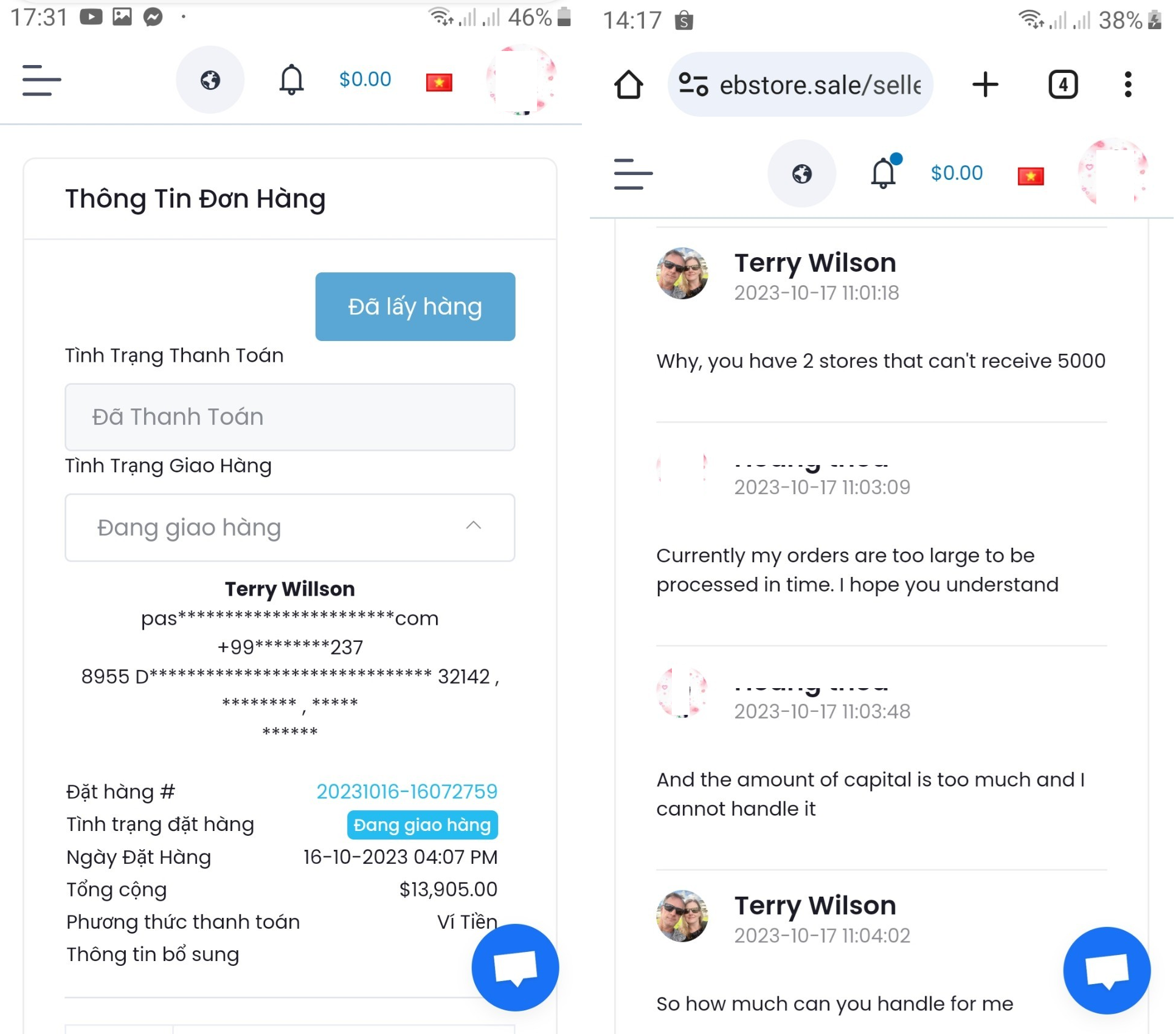 Chị T. làm theo hướng dẫn, xin đóng cửa gian hàng ảo của mình. Phía công ty cũng khẳng định với chị khi đóng gian hàng rồi thì sẽ không có đơn hàng nào phát sinh nữa. Nhưng, vẫn còn hơn 390 đơn tồn đọng chưa giao, nếu chị T. không thanh toán các đơn này thì sẽ không thể nào rút được tiền ra. Vì đã đóng cửa gian hàng trên trang TMĐT của công ty, nên chị phải nộp một khoản tiền để bảo lãnh đơn hàng của mình.