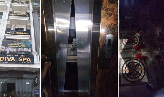 Cùng thời điểm này, hai nhân viên dẫn hai khách lên tầng trên của cửa hàng spa làm đẹp thì bất ngờ điện bị ngắt, bốn phụ nữ mắc kẹt trong thang máy. Gặp sự cố bất ngờ, người mắc kẹt trong thang máy hoảng loạn, sợ hãi, cầu cứu.